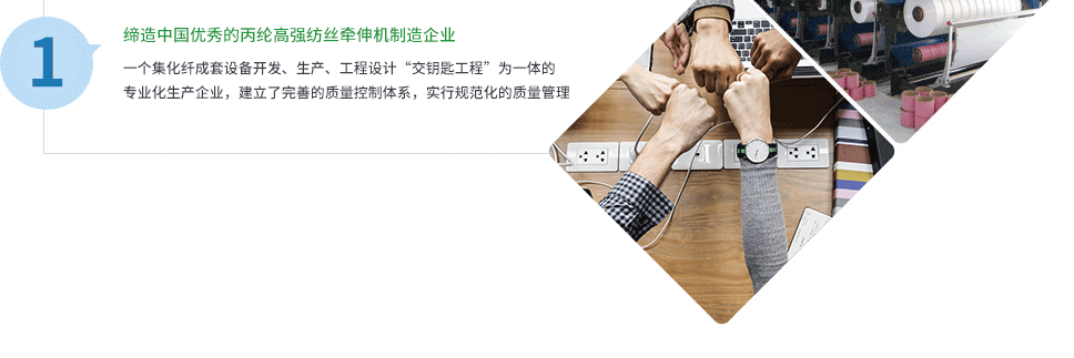 公司致力于制造質(zhì)量上乘的產(chǎn)品,優(yōu)質(zhì)的售后服務(wù)。產(chǎn)品為國(guó)內(nèi)眾多企業(yè)服務(wù),并遠(yuǎn)銷東南亞、東歐及南美。我們期待與海內(nèi)外客戶廣泛合作,共創(chuàng)化纖工程新輝煌。